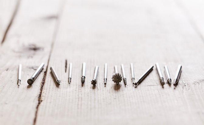 - Boras. Afin de ne pas perdre de temps et d'argent, achetez des options de diamant avec une tête en forme de boule de différents diamètres. Ils peuvent être utilisés pour créer n'importe quel design.