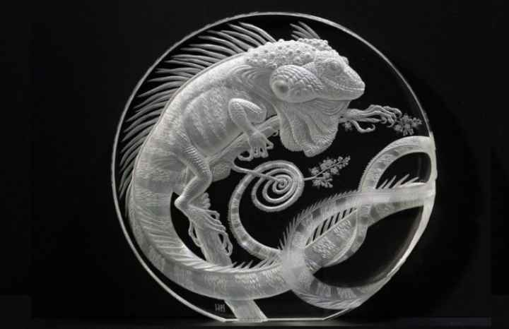 Verre organique gravé à la main