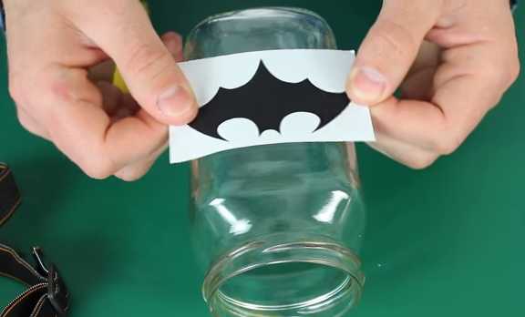 - Ensuite, nous collons ce flan sur le verre (dans notre cas, il s'agit d'un bocal en verre)