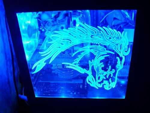 La gravure sur plexiglas est toujours appliquée à partir de l'arrière de la plaque acrylique, car il est plus pratique de visualiser toute la face avant, où l'image sculptée est obtenue.