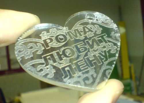 La technologie laser permet d'inscrire des objets même petits et très fragiles.Aujourd'hui, la nouvelle technologie est capable de créer des dessins vectoriels, des photographies matricielles dans n'importe quelle résolution sur la surface du plexiglas. Tout cela a trouvé une application dans les structures publicitaires et commerciales, dans la production de souvenirs. Les images semblent intéressantes si le rétroéclairage de la gravure sur plexiglas participe à la conception. Cet élément de décoration est utilisé dans les enseignes publicitaires.