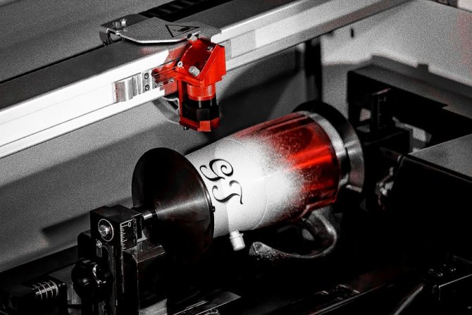 Par exemple, les verres avec une poignée sont usinés avec un dispositif de gravure circulaire. Mais il est extrêmement important de les régler très précisément pour que la poignée ne tourne pas dans la zone de gravure. Il est nécessaire de déplacer l'axe Y à la position la plus élevée et de fixer la pièce de manière à ce que la poignée soit légèrement au-dessus du niveau du faisceau laser. Étant donné que la pièce tourne vers l'arrière pendant le processus de gravure, le risque de collision du stylo avec la tête laser est réduit à zéro.