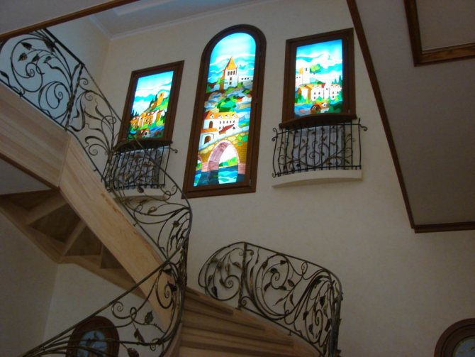 Vitrail fausses fenêtres avec éclairage sur la volée d'escalier