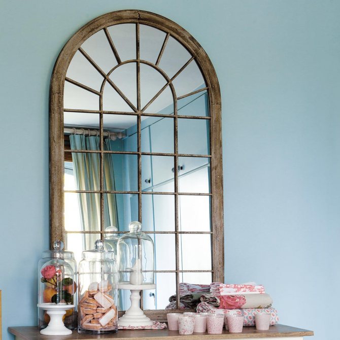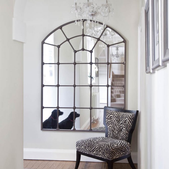 Cette technique est considérée comme très intéressante, car son objectif principal est d'agrandir la pièce en repoussant ses limites. Pour ce faire, vous avez besoin d'un carreau de miroir ou d'un miroir d'une seule pièce de la bonne taille. La fenêtre miroir doit être montée sur un mur plat, sans utiliser de niche.