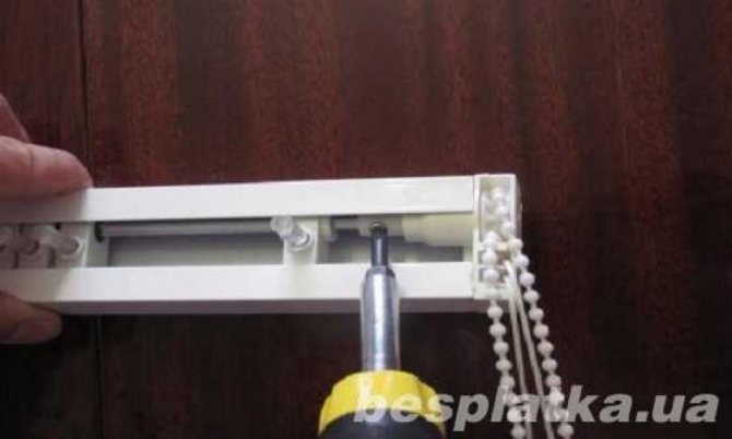 Remplacement de la barre horizontale. Dans ce cas, il est préférable d'acheter une nouvelle planche qui doit correspondre à la taille. Démontez toutes les pièces du mécanisme. Il est important de se souvenir de leur emplacement. Remplacez la partie requise des stores, puis remettez tout en place.