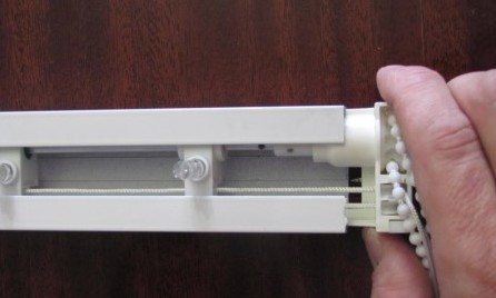 Pour remplacer l'échelle déchirée, les stores sont également retirés en retirant les bouchons latéraux de la corniche supérieure, et les points suivants sont effectués: