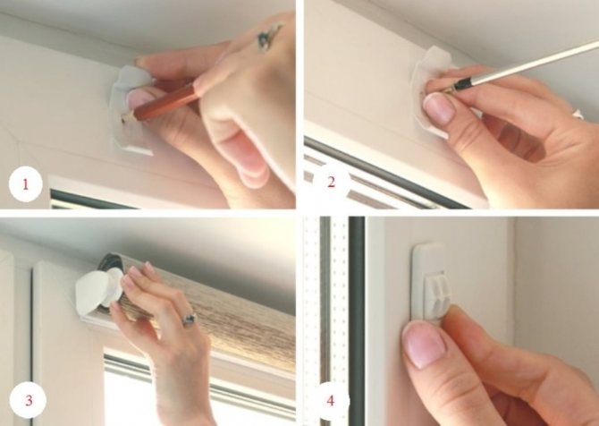 Dans ce cas, l'emportent sur les stores du milieu ci-dessus. S'il n'y a pas d'espace libre sur le châssis lui-même, fixez-le à la pente supérieure de l'ouverture de la fenêtre. Ainsi, lorsque vous ouvrez la fenêtre, vous ne renverserez pas le support de volet roulant adjacent.