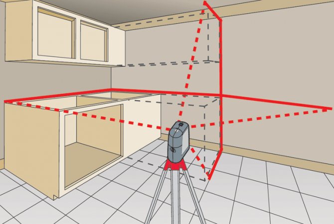Sur toute la longueur de la pièce, des balises spéciales sont installées, dont la ligne supérieure va jusqu'à la marque laissée par le niveau de l'eau.