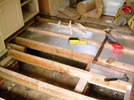 La cuisine est une pièce spéciale de la maison, où une humidité élevée se forme souvent, car c'est là que se déroulent la cuisson et le lavage de la vaisselle. Par conséquent, en décidant de commencer à élever le sol de vos propres mains, vous ne devez pas utiliser un arbre à ces fins, qui, comme vous le savez, ne tolère pas bien l'humidité.