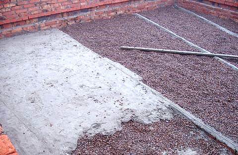 Si de l'argile expansée est utilisée, cette technologie s'appelle une chape sèche. Dans ce cas, le mortier de ciment n'est pas utilisé.