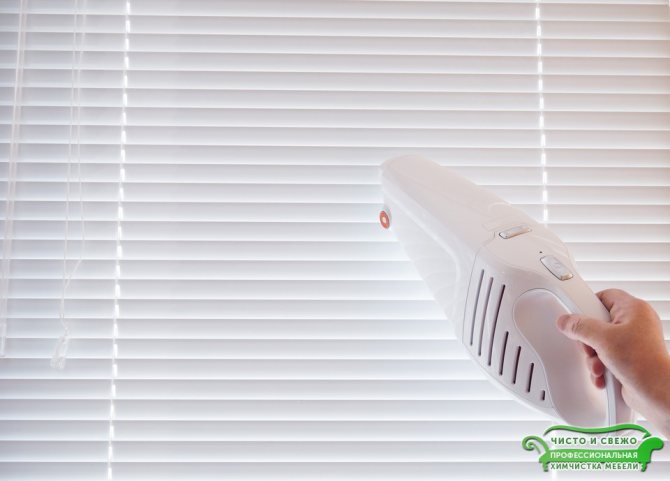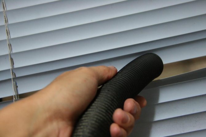 La première étape: Si trop de poussière s'est accumulée à la surface des stores, vous pouvez utiliser un aspirateur de voiture portable. Dans ce cas, tous les mouvements doivent être effectués avec soin afin de ne pas rayer les lamelles.