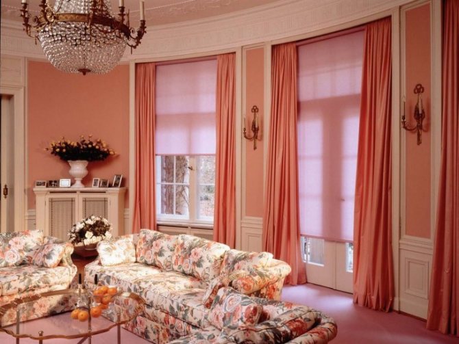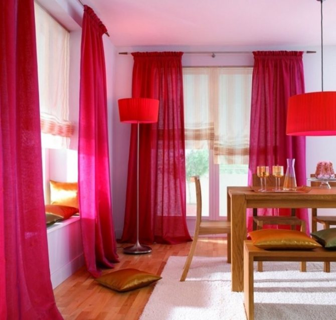 Option 2. Conformité avec le monochrome. Si les textiles de la pièce ont différentes nuances d'une certaine couleur, il est nécessaire de combiner le rideau avec l'une des options existantes.