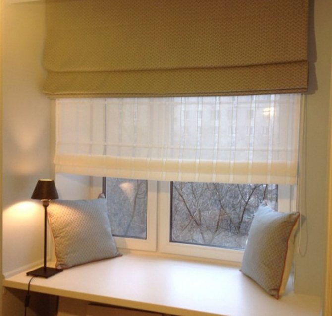 En général, la combinaison de tissus lourds et légers s'avère être la plus réussie, grâce à laquelle les deux fonctions peuvent être réalisées - protéger du soleil et du froid et décorer la pièce.