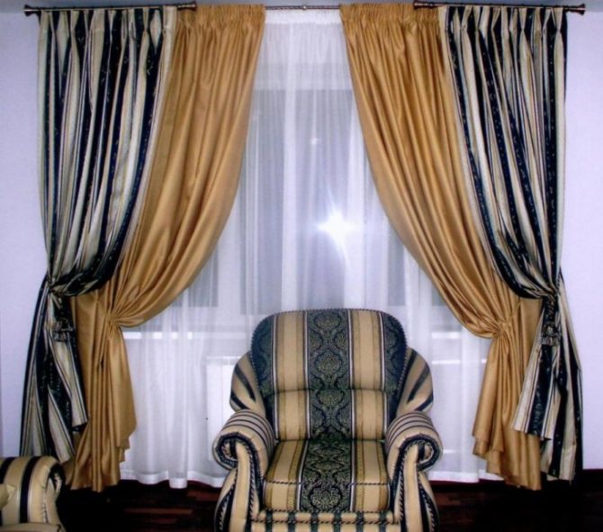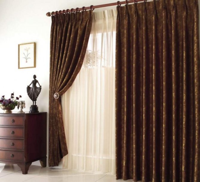 Noter! Les tissus lourds doivent être combinés avec des tissus légers: organza, tulle, lin, velours ou taffetas. La palette de couleurs des rideaux doit être combinée avec l'intérieur de la pièce.