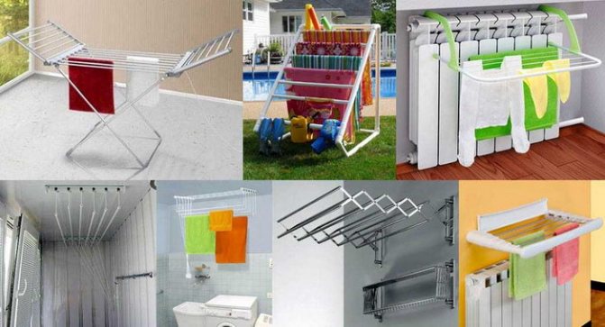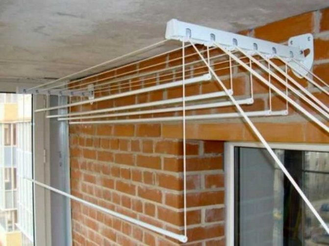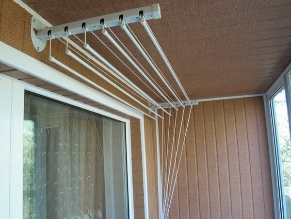 En pratique, tous les types de cordes et divers systèmes de séchage sont utilisés sur les balcons et les loggias. L'essentiel est qu'en conséquence, la structure de séchage des vêtements sur le balcon soit confortable. Il n'est pas du tout nécessaire d'acheter des produits chers.