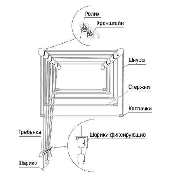 Lors du choix des "vignes", faites attention à la résistance des tiges, des cordes, des attaches et des rouleaux. Il vaut mieux privilégier les fabricants qui fabriquent des séchoirs depuis longtemps et qui ont plusieurs modèles dans leur arsenal.