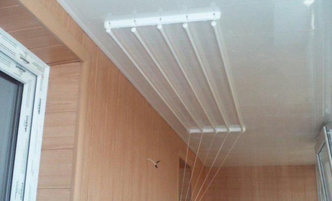 - Des cordes tendues sous le plafond du balcon vous permettront de ne pas exposer vos sous-vêtements au public. Le câble doit être situé le long de la pièce. La structure est montée au plafond ou aux murs.