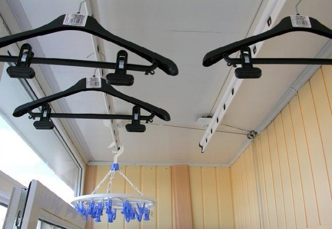 En vente, vous pouvez trouver des séchoirs au plafond - "vignes" pour le linge sur le balcon et des modèles muraux de toutes tailles.