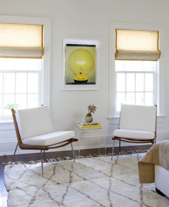 Dans un intérieur minimaliste, les stores enrouleurs en combinaison avec un rideau donneront un accent lumineux.