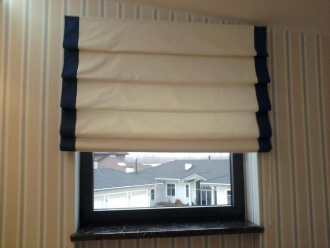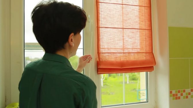- Le fond est plié en éventail et collé, obtenant une "queue de paon". Des stores en forme redressée sont attachés à la fenêtre, l'excédent de corde est coupé, laissant une petite marge. Ensuite, ils mettent le dispositif de retenue, tirent la corde dans la perle d'extrémité, font un nœud dessus.