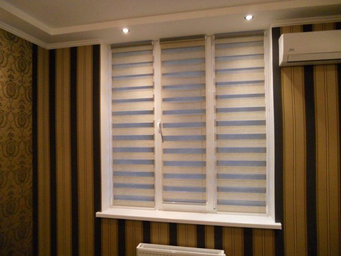 - "Zèbre". Le matériau tire son nom de l'alternance de rayures translucides et mates. Presque un analogue des stores classiques. Le déplacement des rayures détermine dans quelle mesure la pièce sera éclairée ou assombrie.