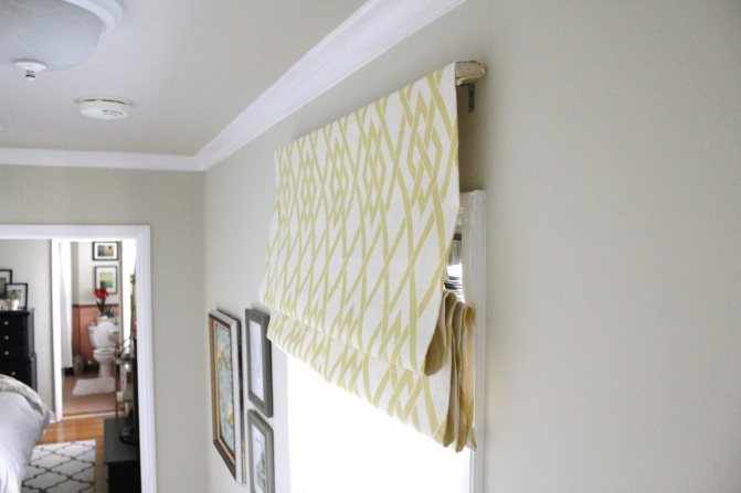 Si vous décidez de fabriquer des volets roulants de vos propres mains, il est préférable de faire ce qui suit: attachez la barre au bas de la toile, puis elle remplira deux fonctions à la fois: un rouleau et une charge. Dans une certaine position, le rideau est fixé avec un ruban adhésif ou un cordon.