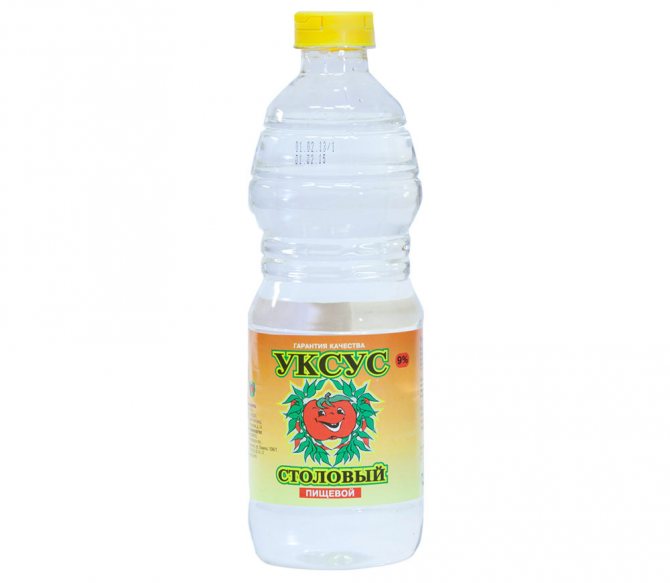 - Une solution de vinaigre à 9% est mélangée avec de l'eau dans un rapport 1: 2.