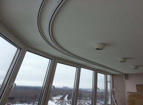 Des principes installation de corniches de plafond dans de tels cas, une ou deux lignes ne diffèrent pas les unes des autres. Le nombre de rangées de corniches dépend du nombre et de la gravité des rideaux.