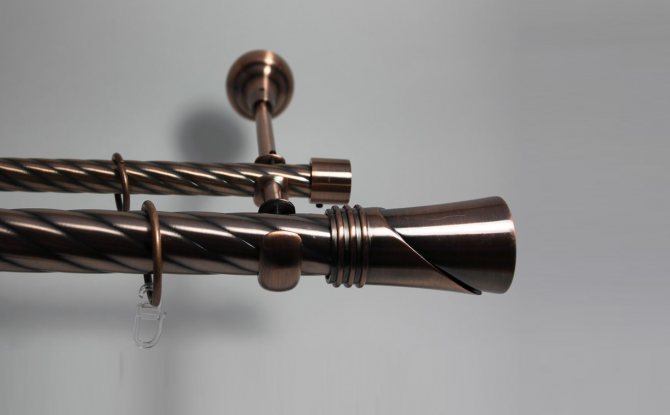 - Forgé. Il y en a des simples, doubles et triples, avec des tuyaux et avec des cordes. Les commandes sont pour la plupart manuelles - à l'aide d'un cordon ou d'une poignée de pointeur. Souvent équipé d'un équipement spécial - un chariot avec un cordon. À l'aide du chariot, vous pouvez écarter les rideaux et les faire glisser. Le prix de ces modèles sur le marché est le plus élevé, mais la force de tous les éléments qui composent le produit est plus élevée.