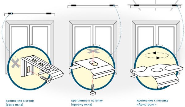 Les systèmes de tuyaux de rideaux métalliques à une ou deux rangées peuvent être accrochés au plafond. Théoriquement, la possibilité de créer une console de plafond à trois rangées existe, mais ce sera une structure encombrante. Mais le poids sera inégalement réparti. Un côté du support où se trouvent les deux tuyaux sera soumis à un excès de poids. Cela pose de nombreux problèmes de fiabilité, de sécurité et de durabilité de l'installation de l'ensemble du complexe de rideaux.