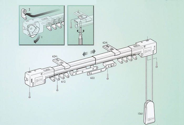 Grâce à cette conception, le poids des rideaux et des rideaux est uniformément réparti sur toute la longueur des avant-toits. Pour que les rideaux soient faciles à séparer et à glisser, ils sont attachés à des glissières spéciales.