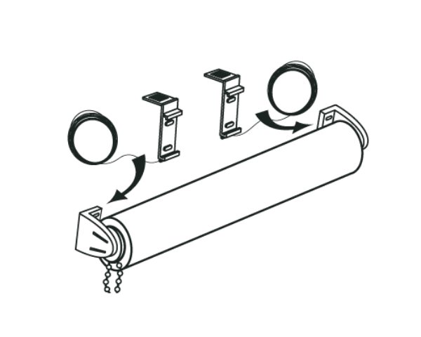 2.4. Installez les inserts dans le mécanisme de commande et dans le bouchon du tuyau.Insérez le produit dans les supports. Le rouleau de tissu doit être visible.