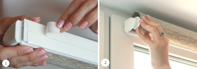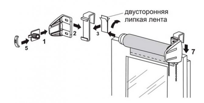Un autre assemblage de volets roulants est proposé, instructions étape par étape ci-dessous. Il y a les étapes suivantes de l'installation sur un «ouvrant aveugle» à l'aide de ruban adhésif: