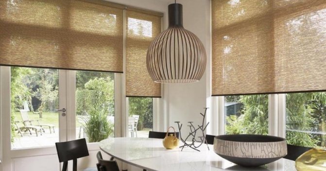L'installation de stores enrouleurs est assez simple et la gestion n'est pas difficile, par conséquent, ce type de décoration de fenêtre est l'un des plus populaires aujourd'hui. Dans les projets de conception, ils sont habilement combinés avec des ajouts, de sorte que l'application va déjà au-delà des styles stricts - seulement de la haute technologie ou du minimalisme.