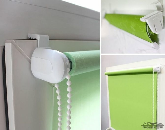 Important! Pour l'installation de forage, vous aurez besoin de: ruban à mesurer, niveau, crayon simple, couteau tranchant, perceuse, vis, tournevis. Nous vous proposons de voir à quoi ressemble le design du store enrouleur et où il peut être fixé.