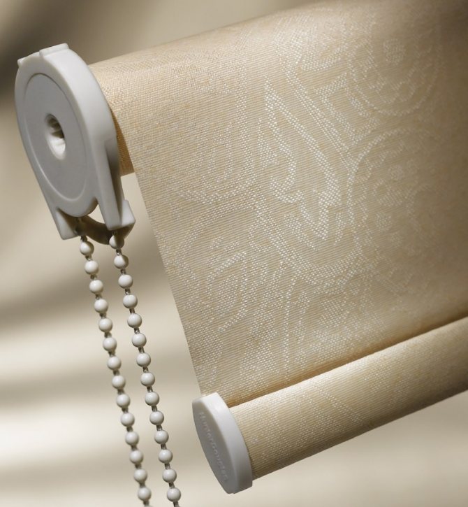 Sur la partie inférieure de la toile, il y a un agent alourdissant avec des aimants ou du velcro. Avec leur aide, le volet roulant est fixé en position abaissée.