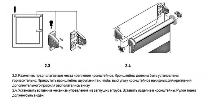 Les stores peuvent être montés à l'aide de vis autotaraudeuses ou d'un ruban spécial. Fixez les supports à la surface du cadre ou dans l'ouverture de la manière choisie, insérez la base avec la toile, fixez les guides, installez la boîte (le cas échéant).