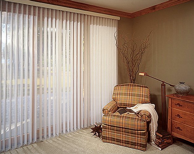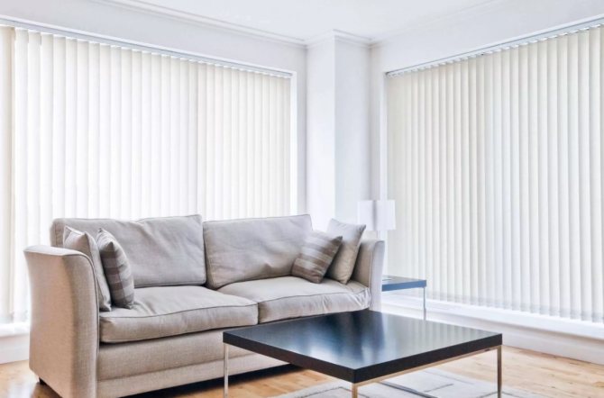Les stores verticaux peuvent être utilisés non seulement pour les fenêtres, mais également pour les portes en plastique avec vitrage complet