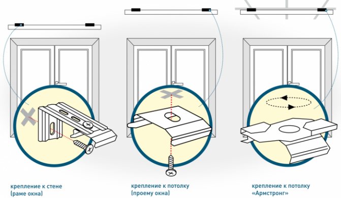 Important! Dans la plupart des cas, les stores peuvent être fixés aux vis qui se trouvent déjà dans le profil de la fenêtre. Cette méthode de montage n'est pas moins fiable que le perçage de trous. Vous pouvez en apprendre davantage sur la possibilité d'une installation aussi simple dans le manuel des stores.