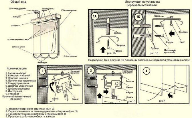 Avant d'installer des stores verticaux de vos propres mains, lisez attentivement les instructions du fabricant. L'assemblage de l'avant-toit doit être effectué en stricte conformité avec le schéma ci-joint. Pour plus d'informations sur l'assemblage de stores verticaux, regardez la vidéo ci-dessous.
