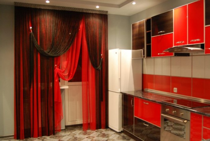 Les rideaux courts sont allongés avec des inserts de couleur contrastante. Vous pouvez même décorer un rideau blanc en y cousant des bandes de marron ou de noir. Le choix des tons est influencé par la palette de couleurs de la pièce, l'impression sur les rideaux. Les proportions peuvent être quelconques, cependant, la hauteur des plafonds doit être prise en compte.
