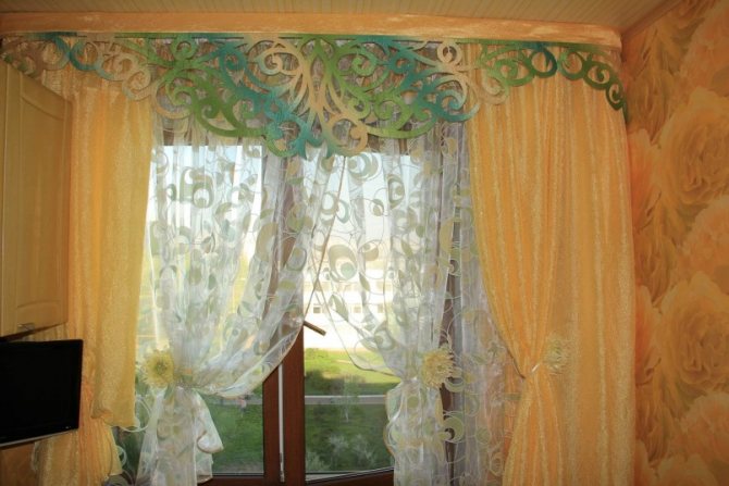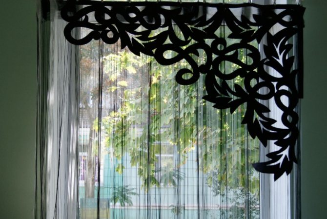 En plus des inserts ajourés, il y a des cercles volumineux, des fleurs, des franges cousues sur le tissu - tout cela peut être utilisé dans la conception de rideaux.