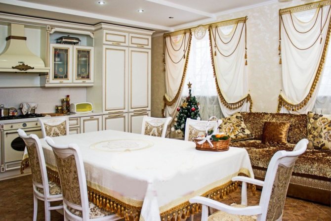 Les plis festons ajoutent de la solennité à la pièce, semblent chers et élégants. Il n'y a que 3 types de draperies: londonienne, française et autrichienne. Pour la fabrication, 2 méthodes sont utilisées.