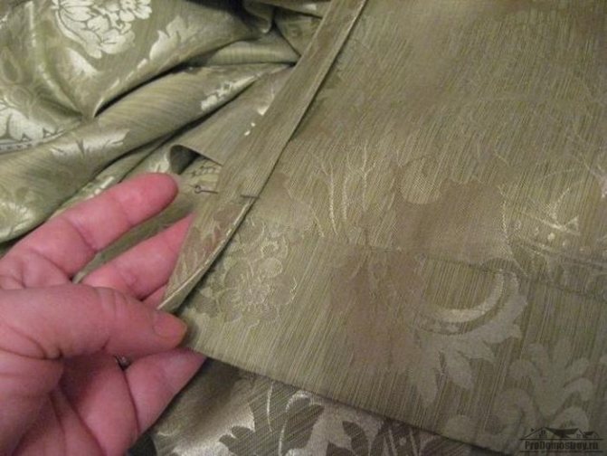 Vous devez d'abord décider de la taille dont vous avez besoin. Par conséquent, les rideaux doivent être suspendus et la longueur marquée à l'aide d'épingles. La marge d'ourlet sera de 14 cm, vous devez donc mesurer un tel segment à partir des épingles marquées, puis couper le tissu. Le tissu est plié deux fois, après quoi il est plié. Le long du bord du produit du mauvais côté, vous devez marcher avec un fer à repasser qui n'est pas trop chaud, afin de ne pas endommager le matériau. Il ne reste plus qu'à ourler les rideaux avec un point invisible droit ou un ourlet.