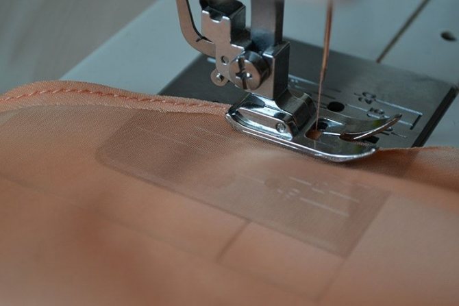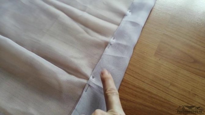 Le moyen le plus simple est d'utiliser un point standard, c'est-à-dire un point droit. Si le matériau ne s'effrite pas, le rideau est replié 1 fois. Pour les tissus amples, pré-traitez les bords ou pliez 2 fois. Description détaillée du processus: