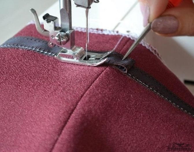 Les couturières expérimentées agissent différemment - elles appliquent un biais prêt à l'emploi (il a des tolérances) immédiatement sur les côtés avant et arrière. Après cela, 1 ligne droite est posée sur toute la longueur du produit.