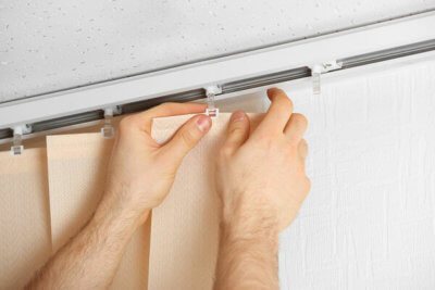 Le travail le plus difficile attend les propriétaires de rideaux verticaux, dont la largeur doit être réduite. Avant de raccourcir les stores horizontalement, retirez le produit de la fenêtre et marquez la tringle à rideau. Libérez-le des lattes et mettez-les de côté.