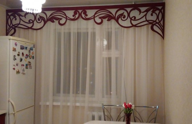 Avec l'aide de lambrequins, la pièce a une apparence élégante, peu de gens diront que l'atmosphère de chaleur et de confort dans la maison est merveilleuse. De plus, toute l'installation peut être réalisée à la main.
