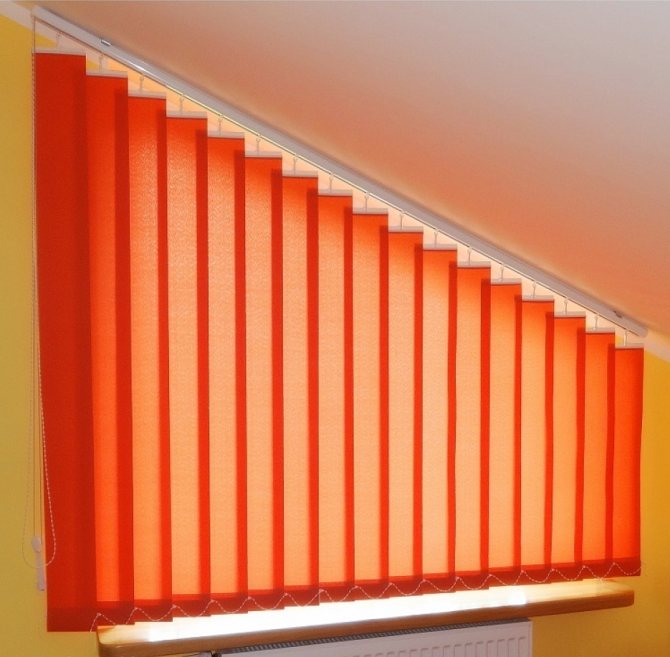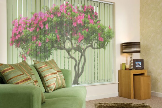Les rideaux verticaux se trouvent souvent dans les bureaux, mais à la maison, ils sont principalement suspendus dans des appartements spacieux. Parfois, ils sont utilisés pour zoner l'espace et séparer une partie de la pièce d'une autre. La largeur des rayures est de 89 ou 127 mm.