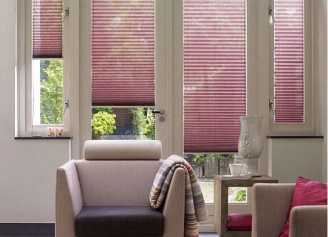 Il s'agit d'un pli accordéon plié en tissu ou en papier. Il y a des trous des deux côtés par lesquels passe un mince guide. Pour cette raison, les rideaux sont faciles à soulever et à abaisser en ajustant le taux d'ombrage. Dans ce cas, la découpe peut être placée à volonté: au-dessus de l'ouverture de la fenêtre, au milieu ou en dessous.